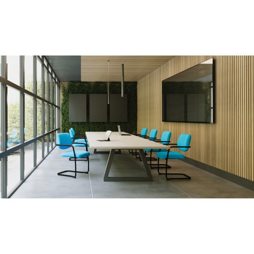 Sleek and stackable, the Aria Chair is designed to elevate any meeting space. Its jet black steel frame and slim profile create a clean, professional look, while fixed padded arms offer added support. Lightweight yet durable, it’s ideal for boardrooms and conference environments.