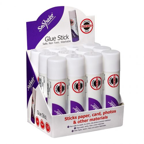 - Available in 9g to 36g size, you will never come unstuck using Snopake GlueSticks. Not only is the glue in Snopake GlueSticks washable but it is suitable for children.