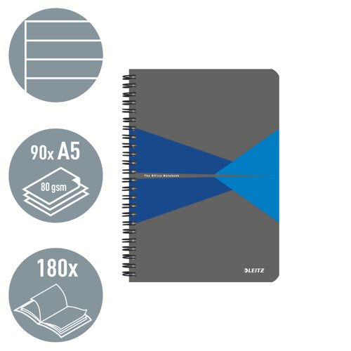 Leitz Office Notebook A5 ruled, wirebound with cardboard cover - Outer carton of 5