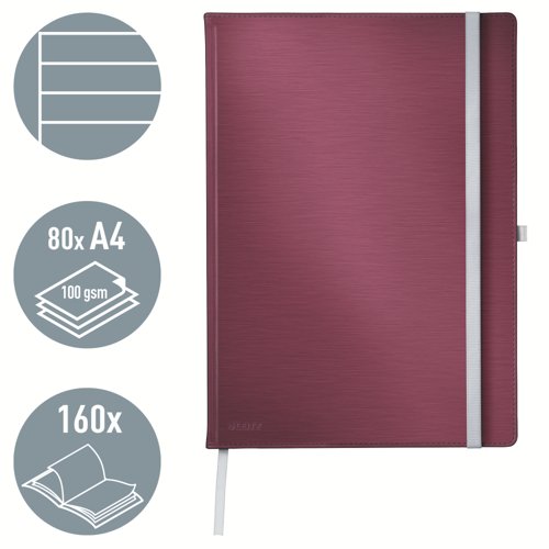 Leitz Style Notebook A4 ruled with hardcover 80 sheets. Garnet Red - Outer carton of 5