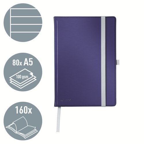 Leitz Style Notebook A5 ruled with hardcover 80 sheets. Titan Blue - Outer carton of 5