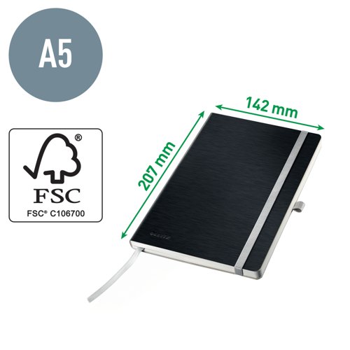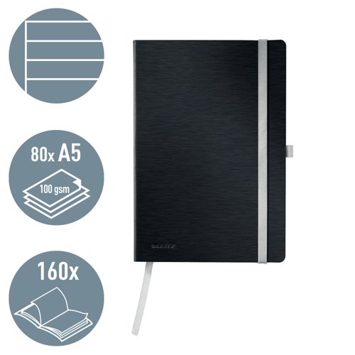 Leitz Style Notebook A5 ruled with softcover 80 sheets. Satin Black - Outer carton of 5