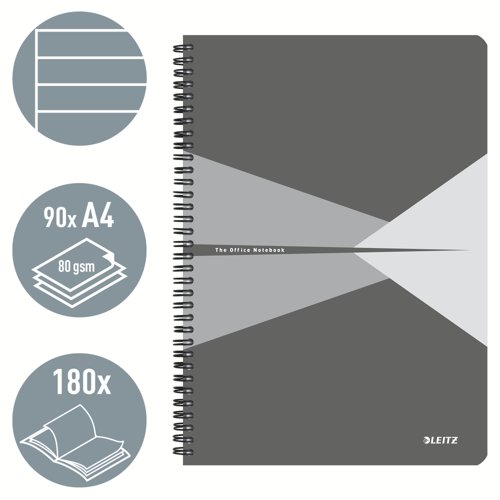 Leitz Notebook Office PP A4 Ruled Grey - Outer Carton of 5