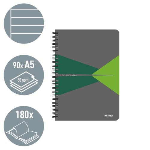 Leitz Notebook Office PP A5 Ruled Green- Outer Carton of 5