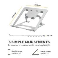 | MULTIPLE HEIGHT ADJUSTMENTS - The Alumia laptop riser offers 6 simple height adjustments to optimise screen positioning, encourage good ergonomic posture and promoting comfort throughout the day (Height Range: 8.1 - 13cm) |
