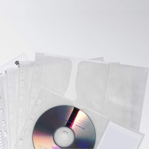 - Universally punched CD/DVD pockets for lever arch files and ring binders. Each pocket has an internal protective lining and includes space for a booklet or accompanying label alongside each CD.