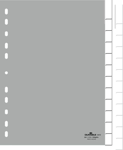 Durable polypropylene file dividers with 12 removable tabs for separating your documents numerically. The German designed index dividers use universal punching for maximum compatibility