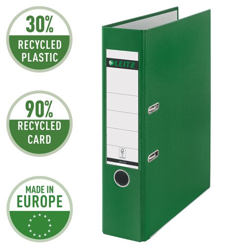 Leitz 180° Plastic Lever Arch File Foolscap 80 mm - Green - Outer carton of 10