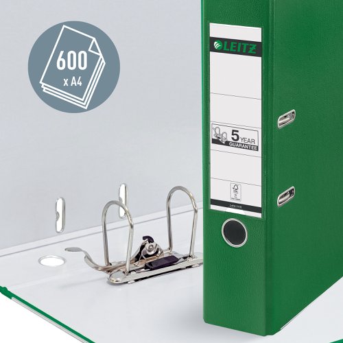 Leitz 180° Lever Arch files are high quality files for professional office users. Durable materials and 180° mechanism ensure good performance and efficiency. The Leitz 180° mechanism is unique and opens to a full 180°, providing you with a 50% wider opening and the opportunity to file from both sides. This saves 20% of your time filing as you do not have to remove papers to insert an extra sheet. The mechanism has been tested 12,000 times and will always align. These lever arch files also hold up to 600 sheets of paper, 100 more than standard files so less space is needed and are designed to hold foolscap size documents. Made from heavyweight 100% recycled board covered in wipeclean polypropylene with thumbhole, rado rings and metal shoes for secure storage and user-friendly handling. Available in a wide variety of colours to cover all requirements, match to your company logo or home office design. Pack of 10 files is supplied.