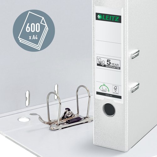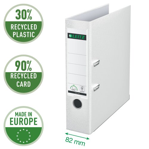 Leitz 180° Lever Arch File Plastic Patented 180° mechanism. A4, 80 mm. White (Pack 3)