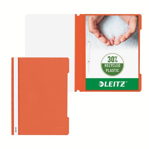 Leitz Standard Plastic Data Files Clear 30% pre-consumer recycled plastic Orange, Front Flat Bar Mechanism A4 Orange - Outer carton of 25