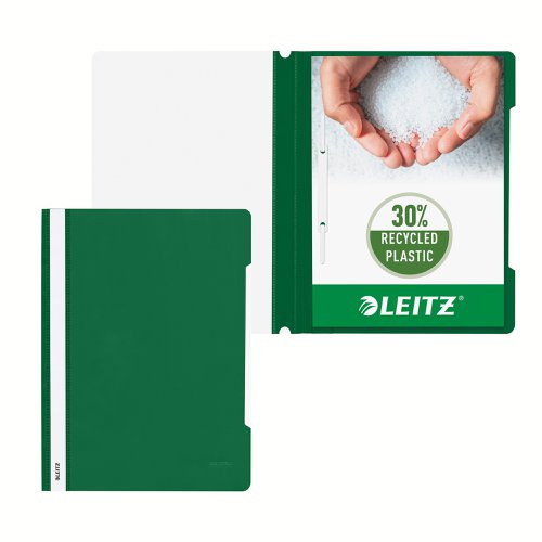 Leitz Standard Plastic Data Files Clear 30% pre-consumer recycled plastic Green, Front Flat Bar Mechanism A4 Green - Outer carton of 25