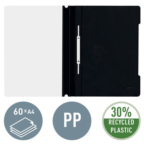 Leitz Standard Plastic Data Files 30% pre-consumer plastic Black, Front Flat Bar Mechanism A4 Black - Outer carton of 25
