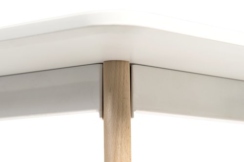 Teknik Office Skandi Rectangular Table in White with wipe clean top, beech legs and easy self assembly