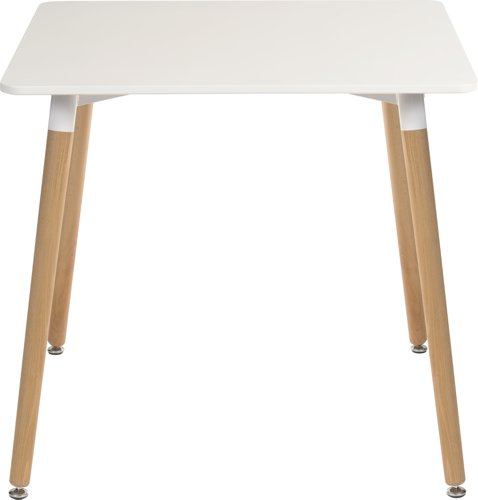 - The Skandi Square Table is a stylish and functional piece designed to enhance any modern space. Featuring a practical, wipe-clean top, this table ensures easy maintenance and durability for everyday use. The contemporary legs, finished in beech, add a touch of warmth and sophistication, making it a perfect fit for any canteen, breakout area, or café setting.This table is available from stock in a fresh white colour, offering a clean, minimalistic look that blends effortlessly with any decor. It requires easy self-assembly, ensuring a quick setup process. Whether you're furnishing a commercial or home space, the Skandi Square Table provides a sleek, versatile solution for your seating needs.