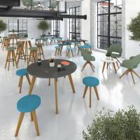 Unity upholstered stools are the ideal companion to the Unity table range, combining solid wood legs with a choice of fabric upholstery options.