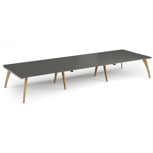 Fuze triple back to back desks 4800mm x 1600mm with oak legs - white underframe, storm grey top