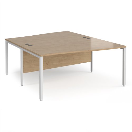 Maestro 25 back to back wave desks 1600mm deep - white bench leg frame, Kendal Oak top