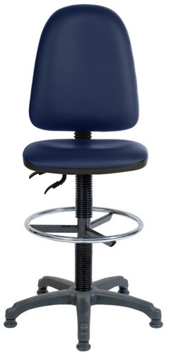 - The Teknik Office Ergo Twin Standard Drafter chair is our entry level solution for counter work, easy to use and with a fixed footring for ”off floor” support. It has a floating or fixed permanent contact backrest in a wipeable PU Blue fabric, a height adjustable seat and fixed glides to stop the chair rolling away! Also available in Blue or Black Fabric or PU Black and with optional Fixed Standard, Step Adjustable or Comfort arm rests.