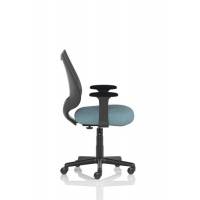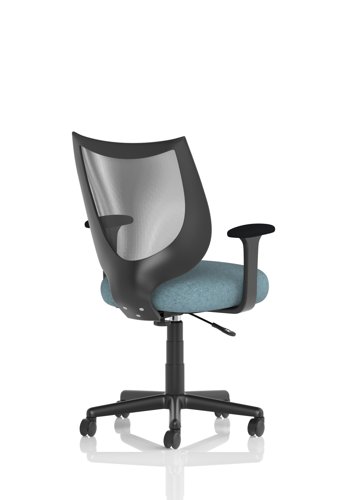 The medium back chair has black mesh upholstery with a metal frame. This operator chair comes with fixed arms. Castors allow easy mobility within an office environment.