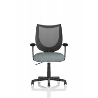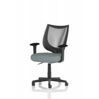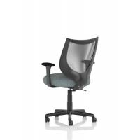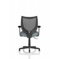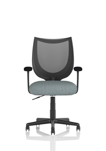 - The medium back chair has black mesh upholstery with a metal frame. This operator chair comes with fixed arms. Castors allow easy mobility within an office environment.
