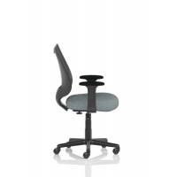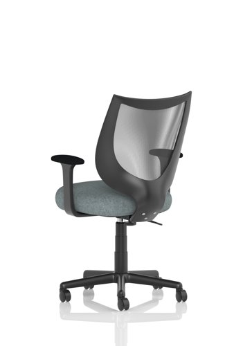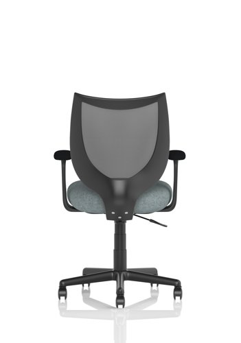The medium back chair has black mesh upholstery with a metal frame. This operator chair comes with fixed arms. Castors allow easy mobility within an office environment.