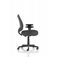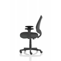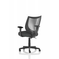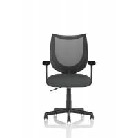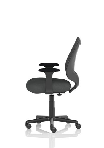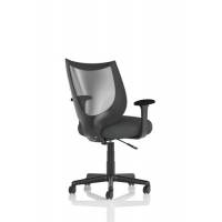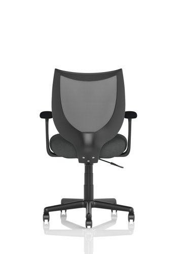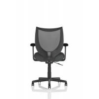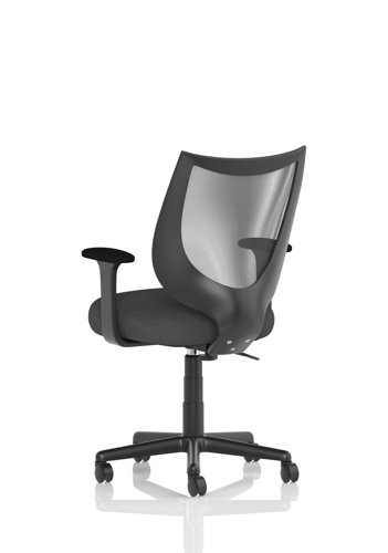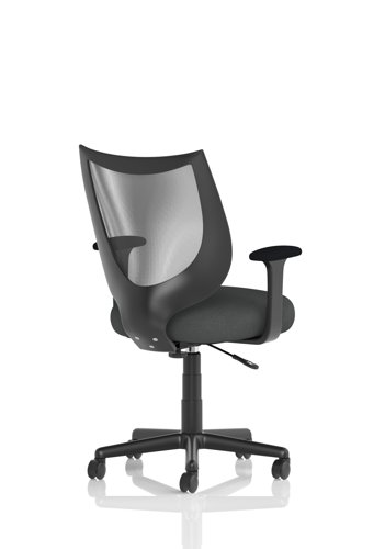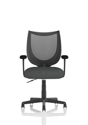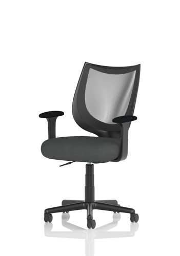 - The medium back chair has black mesh upholstery with a metal frame. This operator chair comes with fixed arms. Castors allow easy mobility within an office environment.