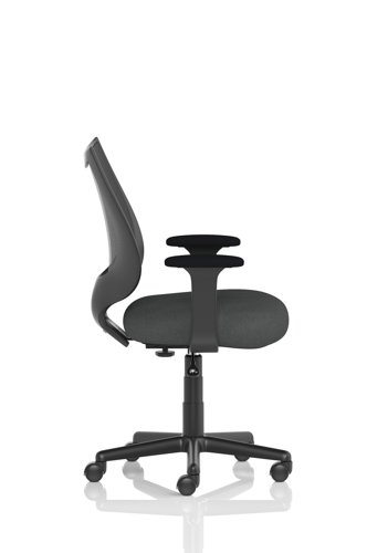 The medium back chair has black mesh upholstery with a metal frame. This operator chair comes with fixed arms. Castors allow easy mobility within an office environment.
