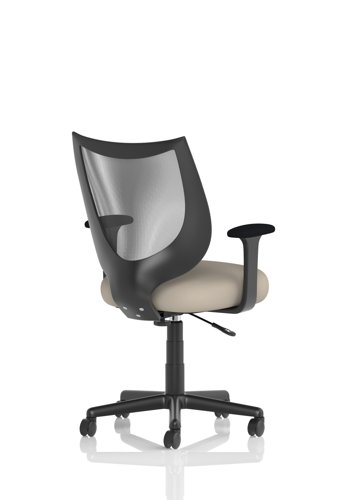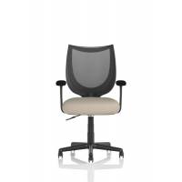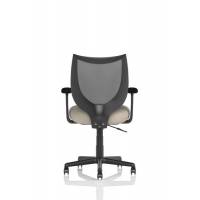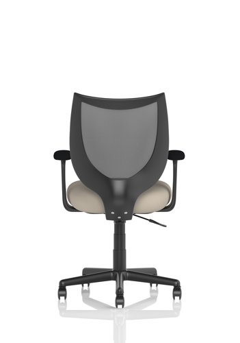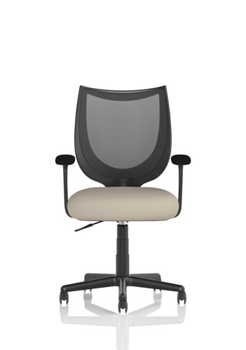 - The medium back chair has black mesh upholstery with a metal frame. This operator chair comes with fixed arms. Castors allow easy mobility within an office environment.