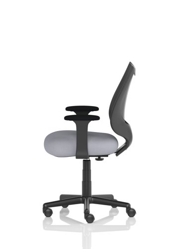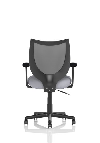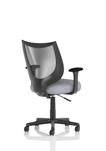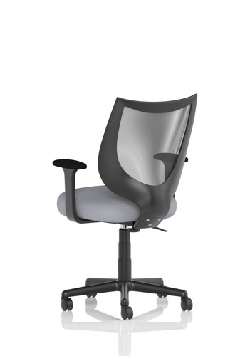 The medium back chair has black mesh upholstery with a metal frame. This operator chair comes with fixed arms. Castors allow easy mobility within an office environment.