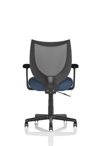 The medium back chair has black mesh upholstery with a metal frame. This operator chair comes with fixed arms. Castors allow easy mobility within an office environment.