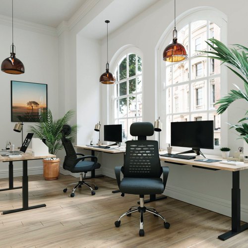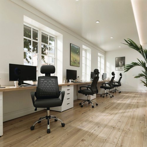 - Experience outstanding value with this High Back Mesh Chair, designed for all-day comfort and durability. The adjustable mesh headrest and height adjustability provide personalized support, while the fixed sturdy arms enhance stability. The chrome base with PU casters ensures smooth movement, and with a 130kg weight capacity for up to 10 hours, this chair delivers top performance and affordability.
