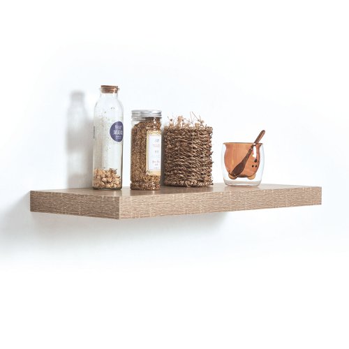 - Our Floating Shelves are clean, modern and ideal for a wide variety of purposes and environments. Whether they’re displaying photo frames and ornaments in your living room or holding plants in your kitchen, our Floating Shelves provide a minimalistic but stylish storage solution in all scenarios. To give our Floating Shelves their unique floating appearance there is a hidden steel bracket that attaches them to the wall behind them, this bracket is constructed from a well-built steel meaning that each Floating Shelf can hold up to 30kg in weight! The RBUK Floating Shelves come in several different stunning finishes and varied sizes so that no matter what colour scheme or theme you may have for your room our Floating Shelves will fit right in with your furniture and walls. Along with a variety of finishes, our Floating Shelves come in both 600mm and 900mm lengths to ensure that no matter what sort of area you may require extra shelving you can rely on our Floating Shelves to fit.