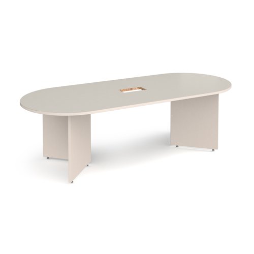 Arrow head leg radial end boardroom table 2400mm x 1000mm with central cutout 272mm x 132mm - Light Grey