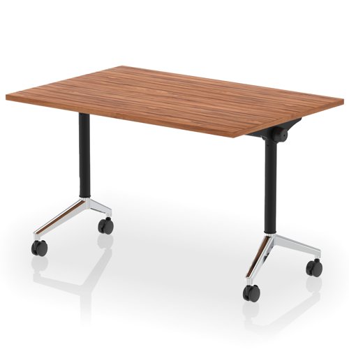Impulse Plus Flip Top 1200mm Rectangular Table With Chrome Foot Walnut Top