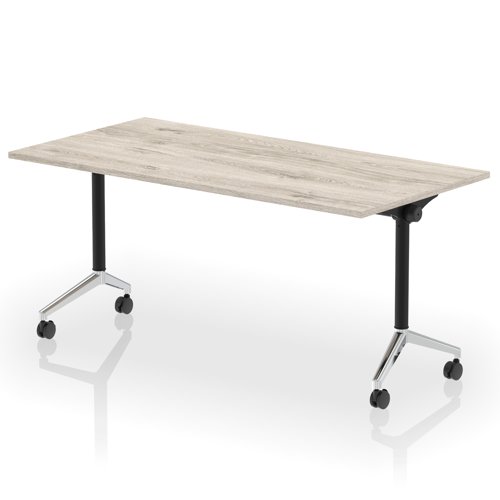 Impulse Plus Flip Top 1600mm Rectangular Table With Chrome Foot Grey Oak Top