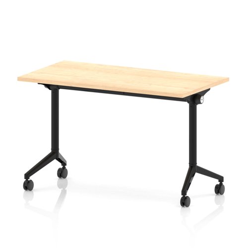 Impulse Plus Flip Top 1200 x 600mm Slimline Rectangular Table With Black Foot Maple Top