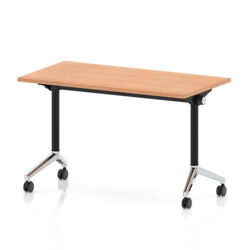 Impulse Plus Flip Top 1200 x 600mm Slimline Rectangular Table With Chrome Foot Oak Top