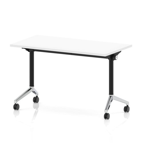 Impulse Plus Flip Top 1200 x 600mm Slimline Rectangular Table With Chrome Foot White Top