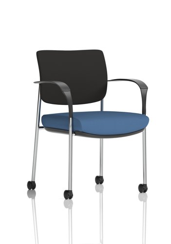 Brunswick Deluxe With Arms Chrome Frame With Castors Black Fabric Back Bespoke Colour Seat Quest Limpet
