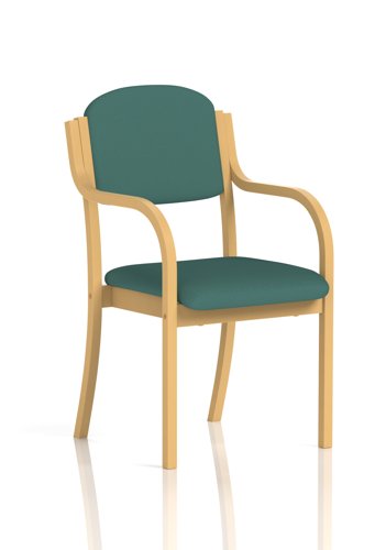 A beech wooden frame with generous seat and arms as standard in a choice of black or blue fabric. Ideal for many functions.