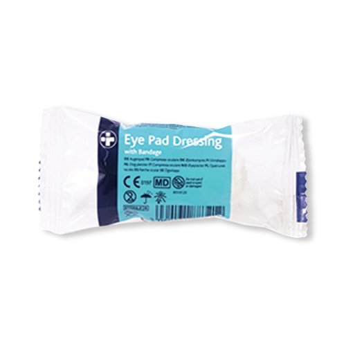 Thick, comfortable sterile eye pad dressings, attached to continuous stretch bandage. The dressing pad has a low adherent contact layer, designed not to stick. Suitable for replacement in all HSE first aid kits. All versions are individually wrapped and sterile.