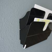 The sleek black finish offers a modern, high-contrast display, making documents stand out clearly. With two side-by-side compartments, this holder is perfect for businesses looking to organise multiple brochures or notices efficiently. The sturdy build supports up to 3kg, ensuring that materials stay securely in place.