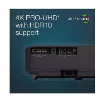 - Bring home entertainment to life and project up to 120 inch. This stylish 4K PRO-UHD1 Smart laser projection TV, is part of the expanding EpiqVision Ultra range that comes with Android TV™ and sound by YAMAHA. Upgrade your home entertainment experience with Epson's 4K PRO-UHD1, ultra-short-throw laser projection TV. Its stylish design will fit perfectly into your home, and you can immerse yourself in your favourite shows with Android TV and sound by YAMAHA features. You can enjoy a 61 inch image from just 3.2cm away from the wall, with the option to adjust the distance to achieve up to 120 inch, for the ultimate home cinema experience.