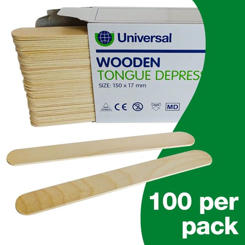 - Flat smooth wooden tongue depressor with rounded tips and high tensile strength, Used to depress the tongue to allow for examination of the mouth and throat, Latex free, Single use