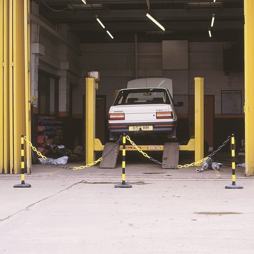 Application: 6mm chain kits. Base Type: Rubber base. Colour: Red/White. Thickness mm: 6. Type: 4 posts, 25m chain & 10 connectors.