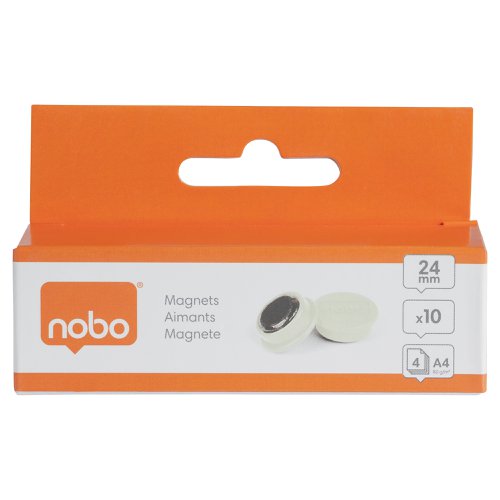 Round magnets are the perfect tool to display and visualise ideas for collaborative brainstorming sessions on magnetic whiteboards or use as fridge magnets to fix reminders and important messages neatly at home. These coloured magnets hold 4 x 80gsm A4 sheets of paper securely and are 24mm in diameter. Magnet strength 300g, pack of 10 white magnets.